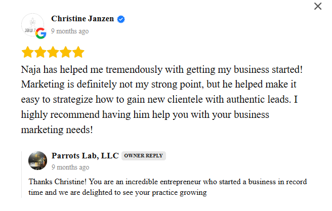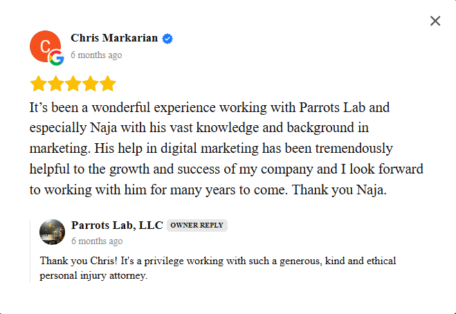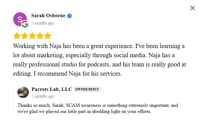 Naja is the founder of Parrots Lab, a video-led marketing agency in the Inland Empire, Southern California. With over 17 years of experience, he helps service businesses, including law firms, CPA firms, consulting companies, insurance brokers, and real estate professionals, build steady lead systems and stand out as trusted experts.